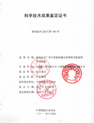 科學技術(shù)成果鑒定證書(五防鎖)
